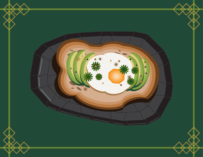 Design an object in a thematic style using only the shapes tool. I thought this was a beautiful piece of avocado toast and I wanted to give it an art deco flair.